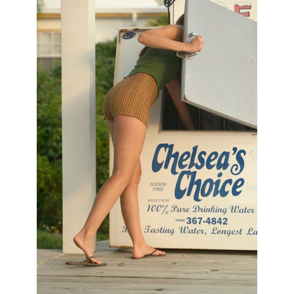 Wear these on beach days when the sun is out and your skin is salty. Perfect for ice-cream cones and boardwalk bike rides. There is a little hidden elastic under the tush that gives them their cute rounded shape. Early 60's inspired beach fun!