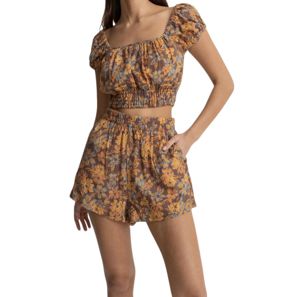 Rhythm: Oasis Floral Short - Chocolate, Brown & Blue