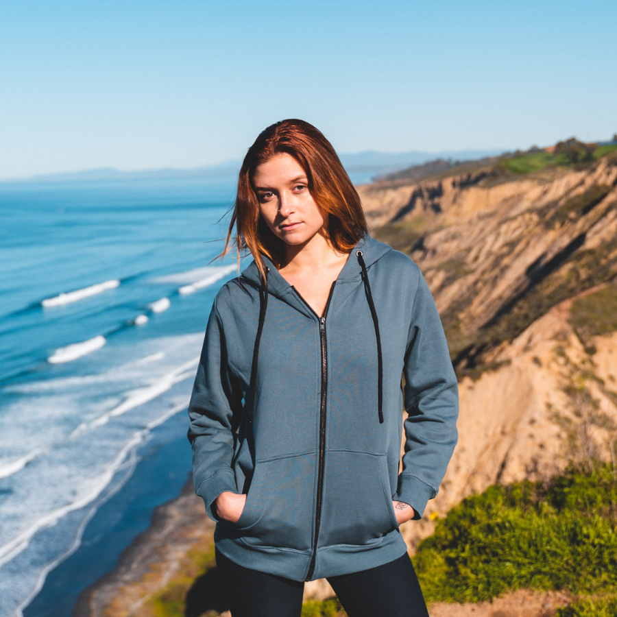 Women's Organic Zip-Up Hoodie - Slate Blue